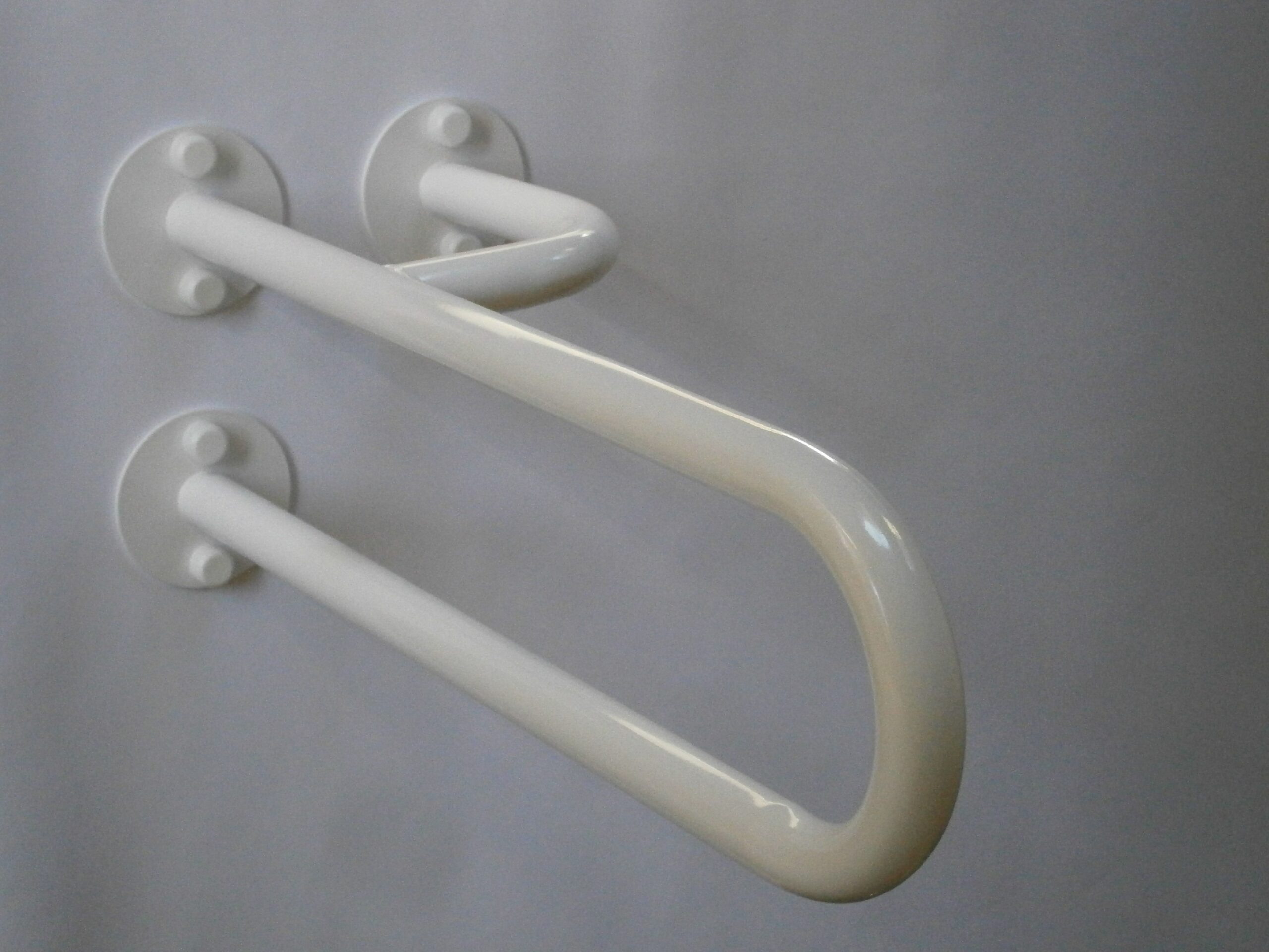Součástí balení jsou potřebné šrouby a hmoždinky pro upevnění madla do pevné stěny. K zakrytí šroubů dodáváme krytky šroubů. Budete potřebovat vrták tloušky 10 mm.