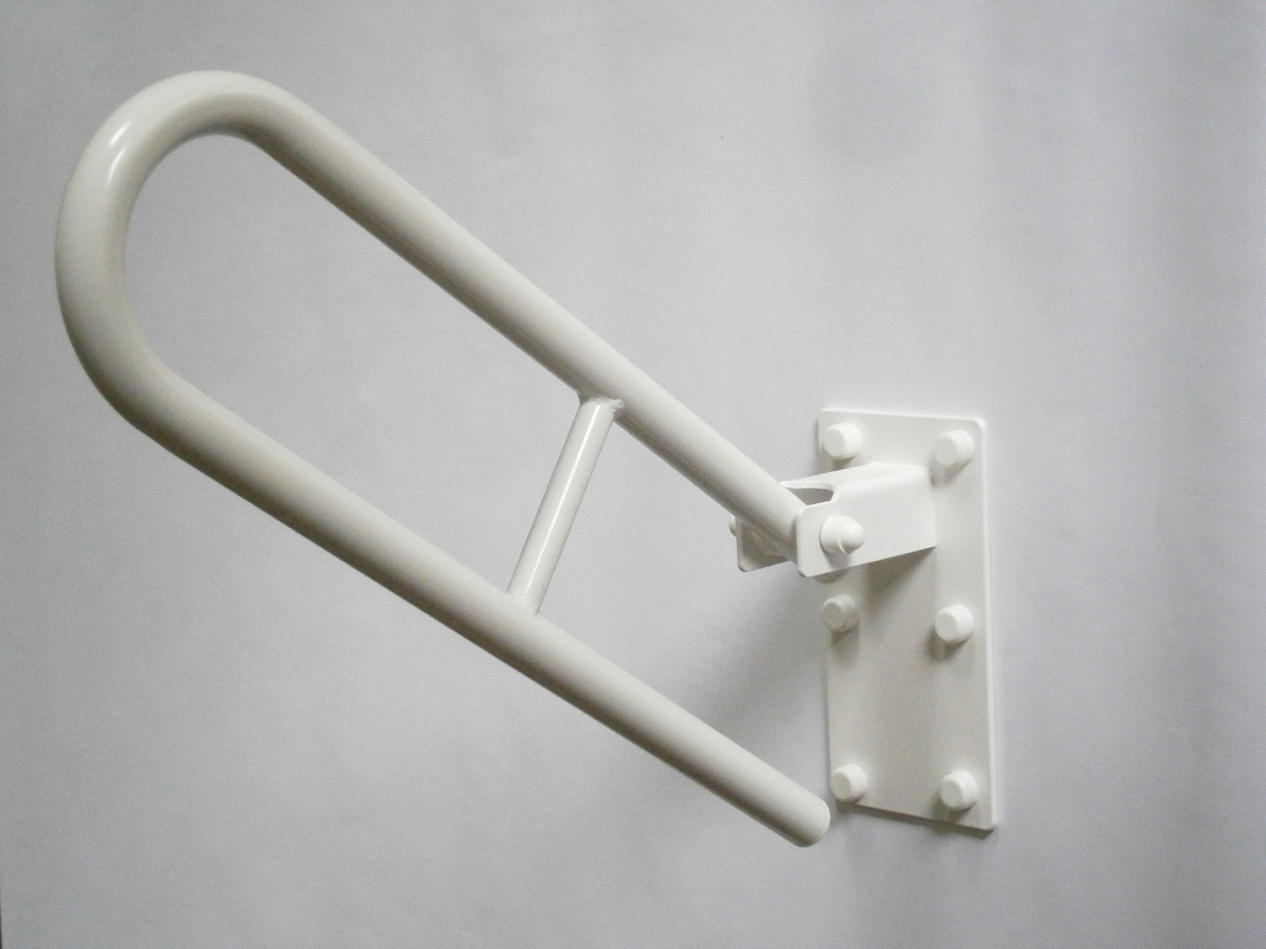 Sklopné madlo „U“ řady PREMIUM je testováno pro bezbariérové prostory. Je ukotveno do pevné stěny šesti ocelovými šrouby, které jsou součástí dodávky. K zakrytí šroubů dodáváme krytky šroubů. Toto sklopné madlo se vyznačuje pevným kloubovým upevněním, které dodává ramenu madla mnohem větší stabilitu a chrání jej před únavou materiálu.