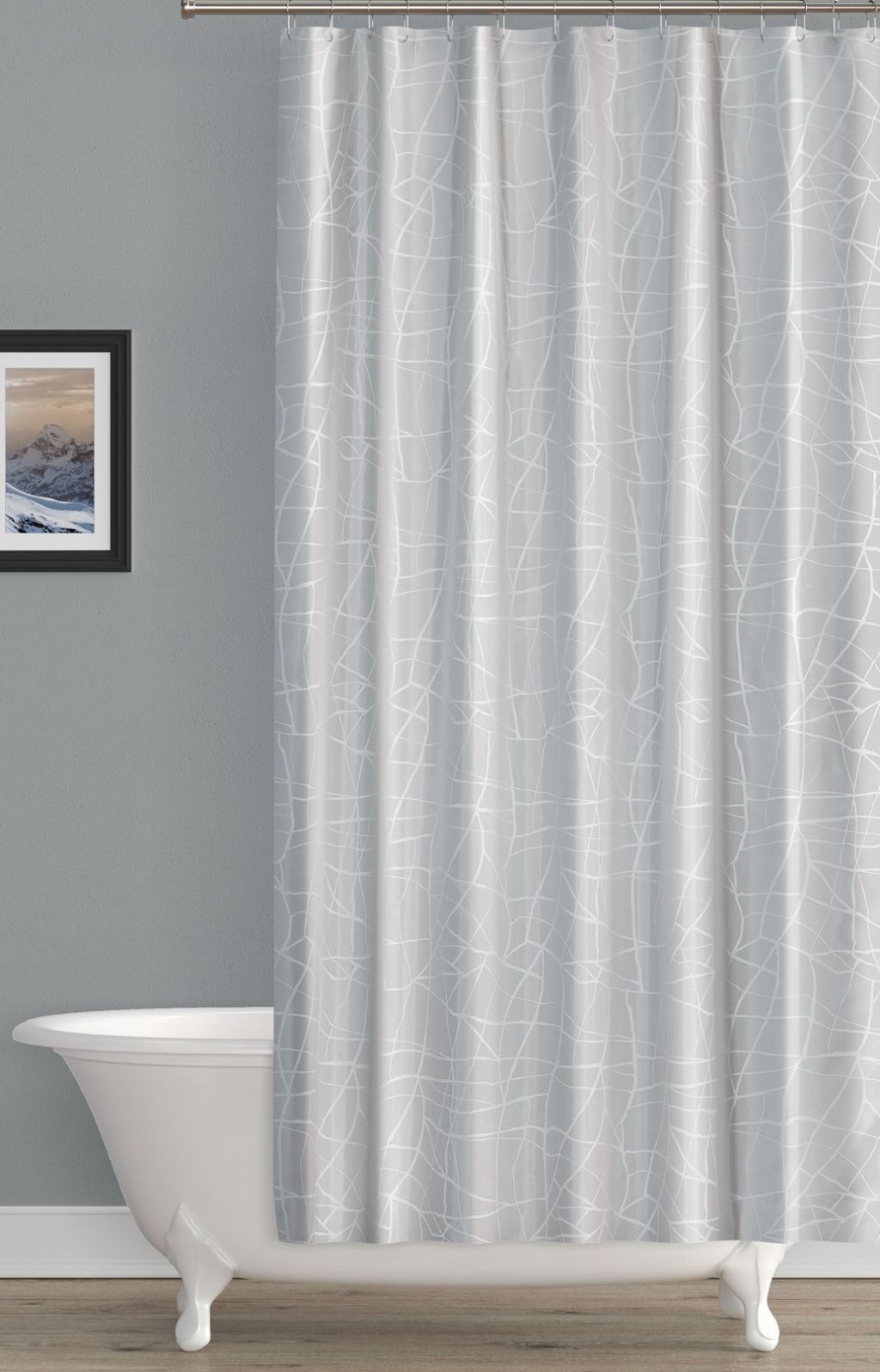 Polyester dodává látce jemnost na dotyk ale i pevnost v tahu. Zároveň si textilní koupelnové závěsy udržují voduodpudivé vlastnosti, nezachytávají nečistoty, čímž se snižují nároky na údržbu. Součástí balení jsou bílé plastové kroužky.
