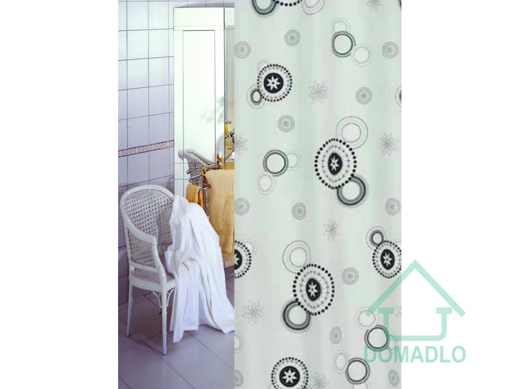 wela TEXTILNÍ SPRCHOVÝ ZÁVĚS ČERNÁ KOLA se závažím obšitý W79761 šířka x výška: 180 cm šířky x počet cm výšky na míru -nastavte počet cm