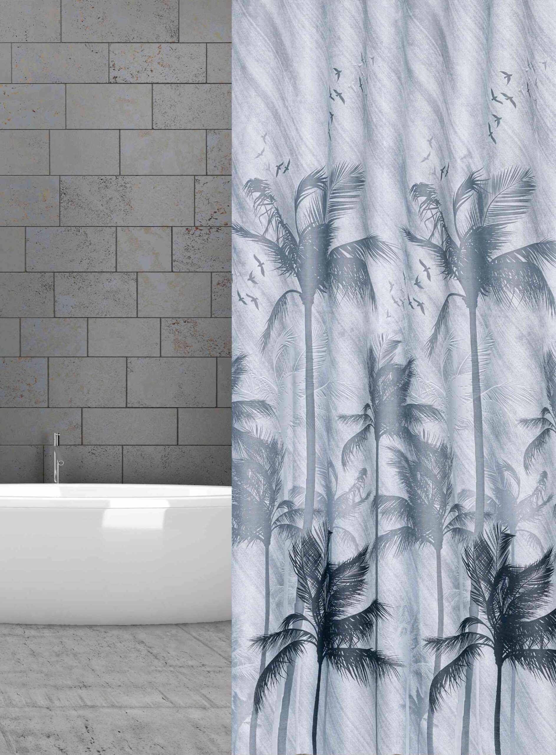 wela TEXTILNÍ SPRCHOVÝ ZÁVĚS ČERNÉ PALMY se závažím obšitý W07777 šířka x výška: za 1 cm šířky (nastavte počet cm) x 180 cm výšky