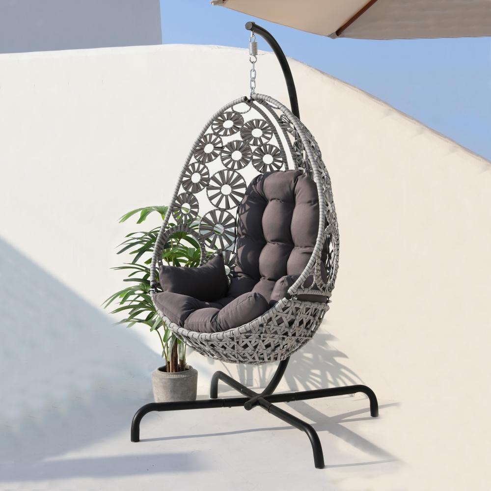 Nekončící relaxace do vnitřního i venkovního prostředí: zažijte novou kvalitu odpočinku se závěsným houpacím křeslem SCARLET. Volně stojící závěsné houpací křeslo je obzvlášť pohodlné a praktické díky polštáři k sezení s měkkou výplní a sedacím prostorem ozdobně vypleteným z umělého ratanu. Robustní kovový konstrukce zaručuje vždy a bezpodmínečně stabilitu nosného rámu.