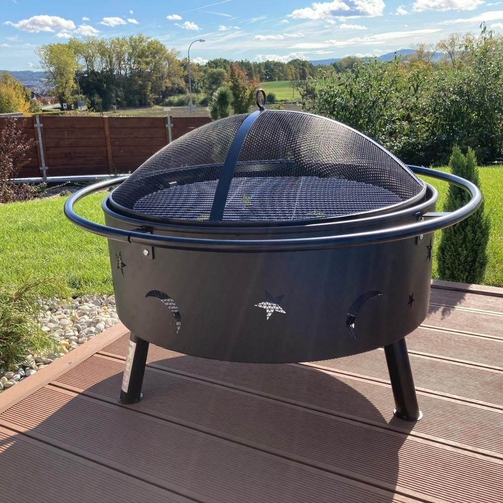 Ale počkejte, to není vše! Když vás přepadne hlad, prostě nasadíte grilovací rošt a voilà – z ohniště je rázem gril! Teď už stačí jen pozvat kamarády, rodinu, sousedy…