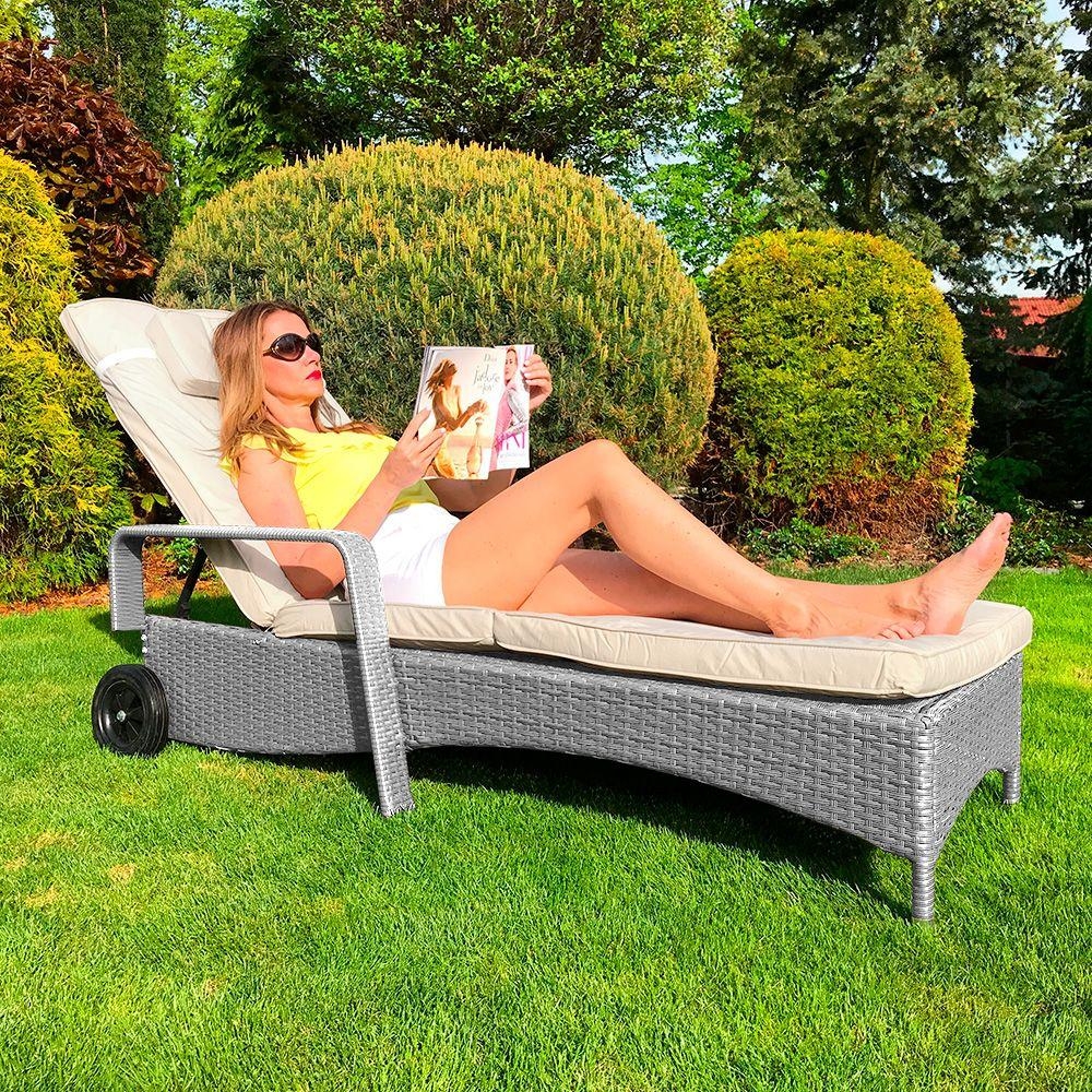 S funkčním ratanovým lehátkem HAVANA máte v letním období vždy náskok. Stylová a moderní konstrukce se vyznačuje přitažlivým designem a vysokou úrovní komfortu. S polohovatelným opěradlem, měkkým polstrováním a praktickými područkami vždy najdete ideální polohu pro maximální relaxaci. Odolný výplet z polyratanu a robustní kovová základna činí z tohoto lehátka perfektní venkovní nábytek. Pohodlné ratanové lehátko HAVANA se vám dokonale přizpůsobí. Snadné přemisťování pomocí dvou koleček je nespornou předností tohoto lehátka. Součástí je měkké polstrování v béžové barvě – na lehátku se budete cítit komfortně jako v posteli.