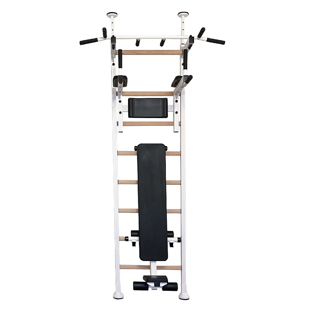 Unikátní žebřiny s hrazdou, bradly a lavicí které lze upevnit standardně nebo zapřením do stropu a podlahy! Výška stropu se může pohybovat mezi 240 a 272 cm!. BenchK 523W jsou profesionální žebřiny, které připevníte, aniž byste museli vrtat do zdi! Místo toho máte k dispozici nastavitelný systém pro zapření o strop a podlahu. Jedinou podmínkou je výška stropu v rozmezí 240 – 272 cm. Pokud ale kotvy do stěny preferujete, nebo chcete využít obou druhů připevnění, je to samozřejmě možné.