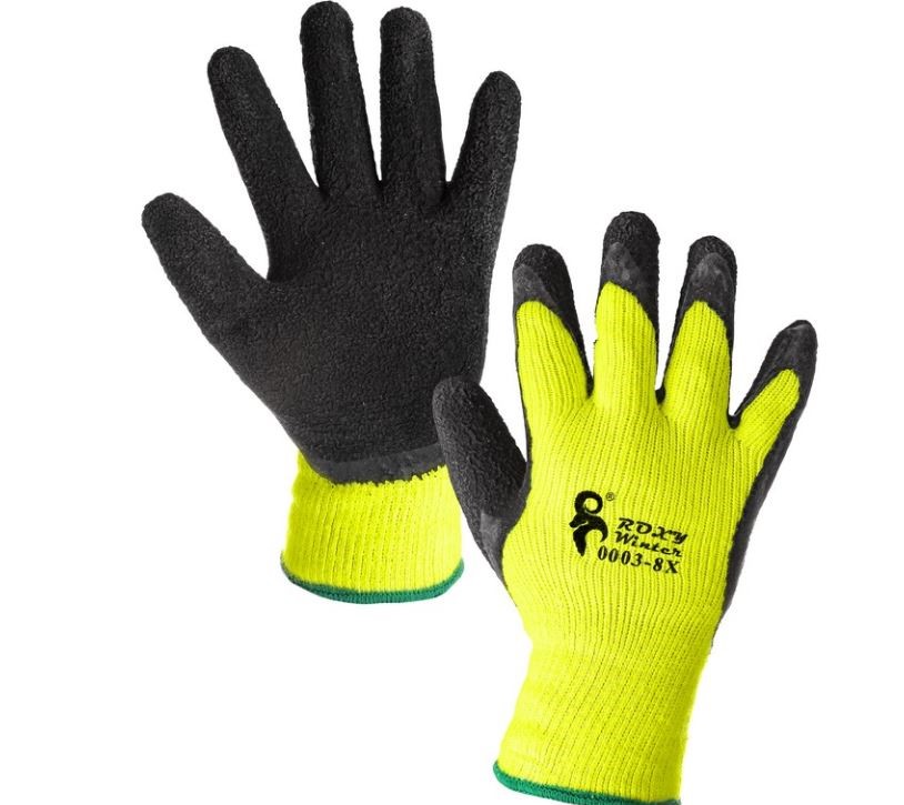 vel. 8 (odpovídá spíše vel. 9 Zimní rukavice s latexovým protiskluzným povrchem. Vhodné na práci v chladném počasí a vlhkém nebo olejnatém prostředí. Měkké, pohodlné.