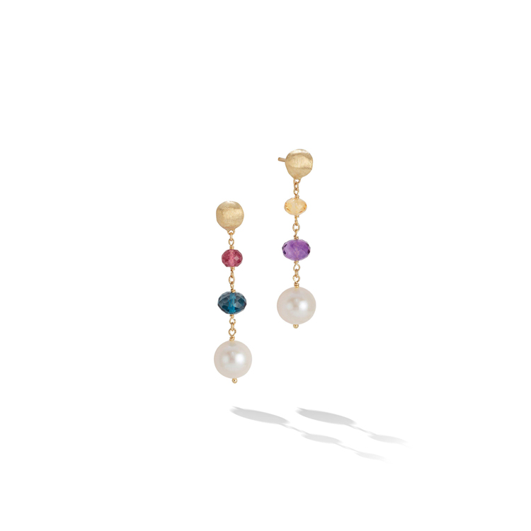 Zlaté Náušnice s Perly a Barevnými Polodrahokamy
