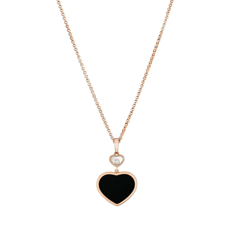 Přívěšek od značky CHOPARD z kolekce HAPPY HEARTS perfektně vyjádří vaši jedinečnou osobnost. Přívěšek s onyxem z růžového zlata ve tvaru srdce doplní svým třpytem a krásou každý outfit. A je jedno, zda se chystáte na oslavu, romantickou večeři nebo na galavečer. Po zakoupení šperku získáte doživotní údržbu zdarma. Prsten kdykoliv vyleštíme, upravíme velikost nebo vylepšíme podle vašich představ.