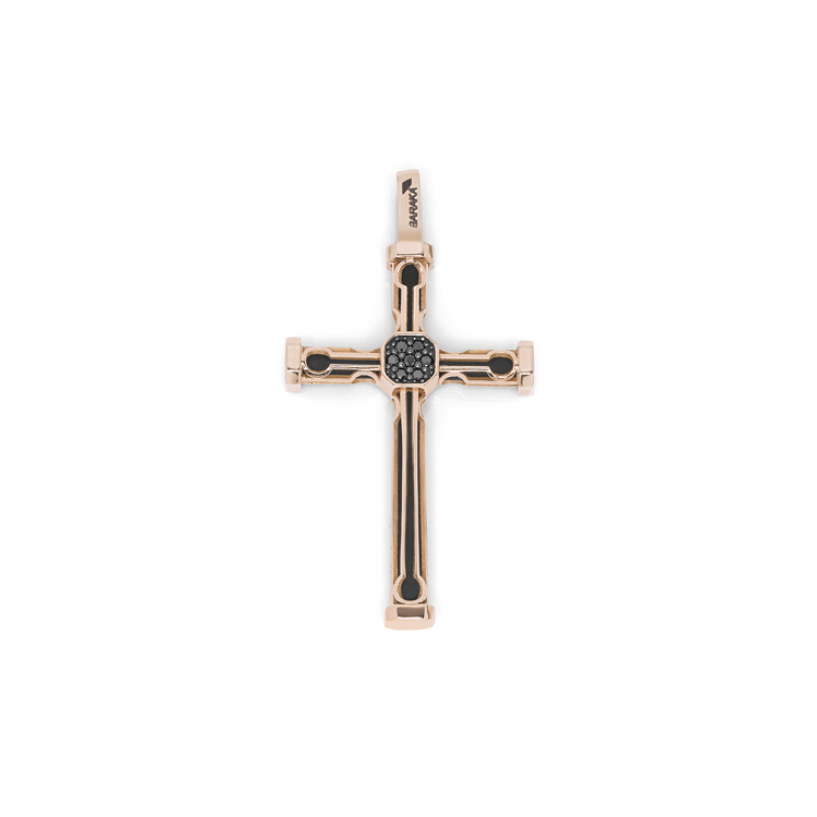 Zlatý přívěsek kříž s černými diamanty CR275411